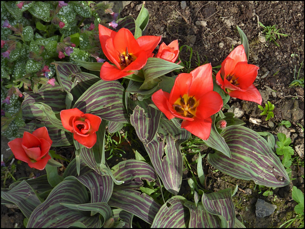 Žena si pochvaluje své zakrslé tulipánky.