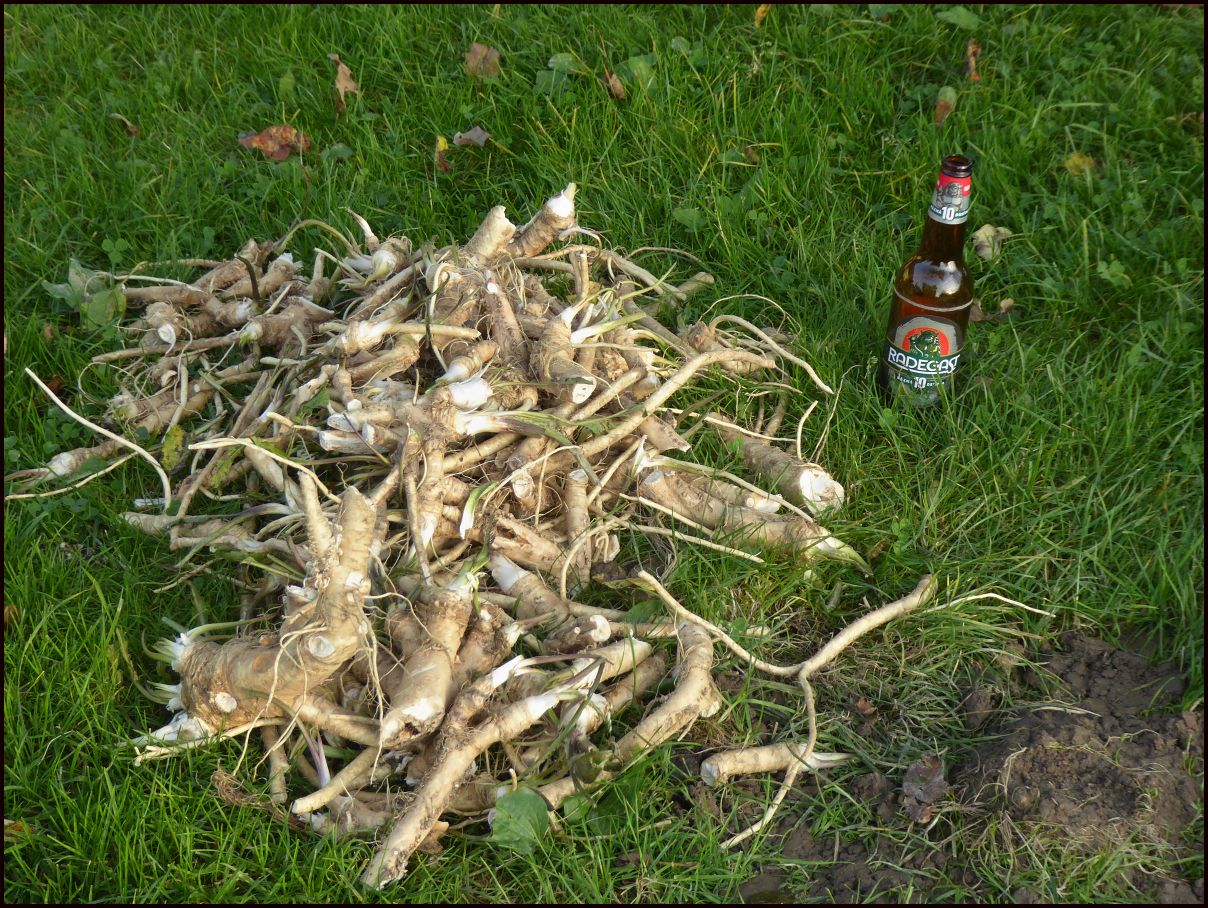 Dva obrázky ze včerejší sklizně, ta láhev rázné tam není proto, že bych byl takový alkoholik, ale pro přirovnání, protože kapesní nůž mi v daném případě nepřipadal vhodný :).