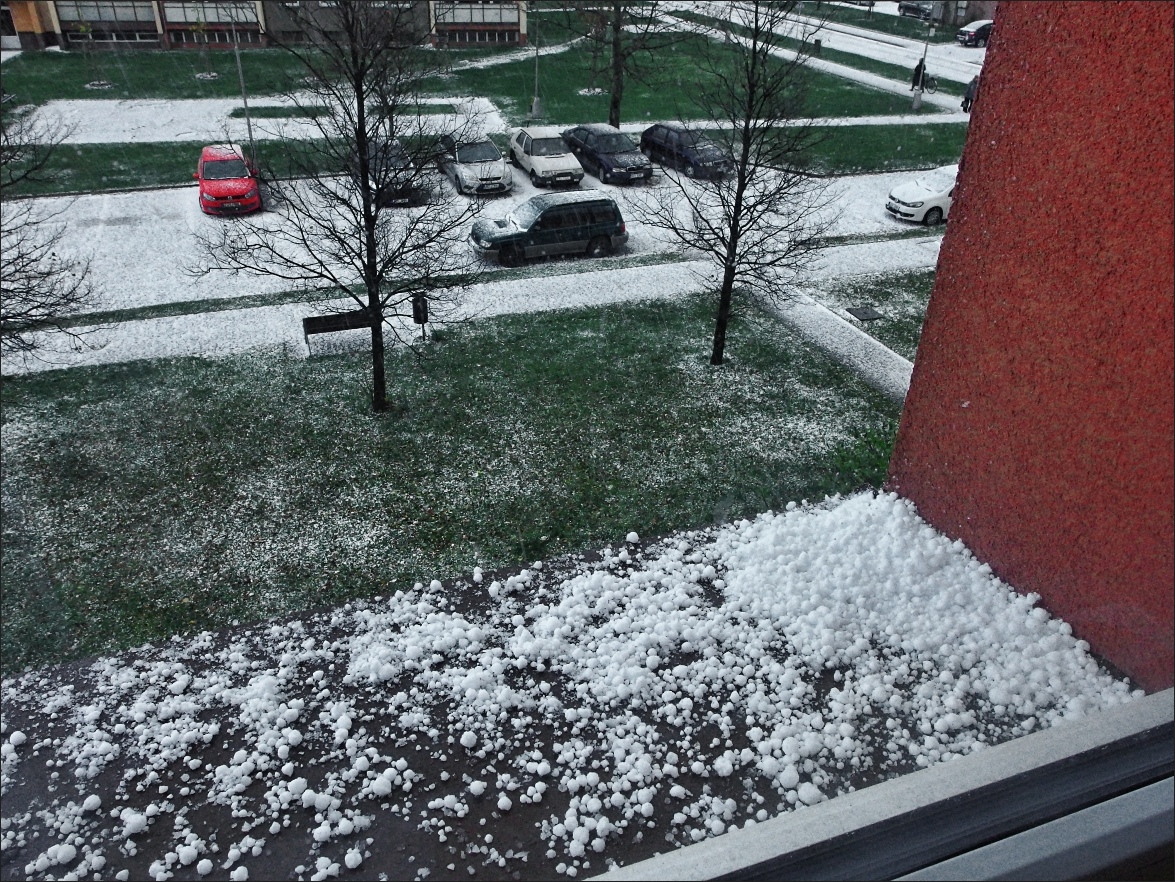 Dnes tu trochu fouká a poprvé se zabělilo, spadlo trochu krup, ale už to taje ...