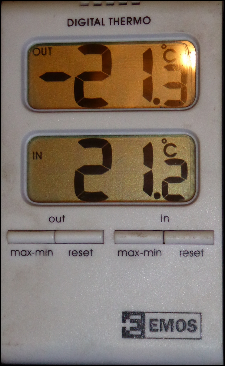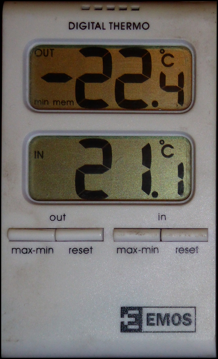 Ahoj, u nás ráno kolem páté bylo necelých -17, podle té sibérie u vás, Petře, tu bylo teplo :D . Teď. kolem jedné hodiny, je -1,5.