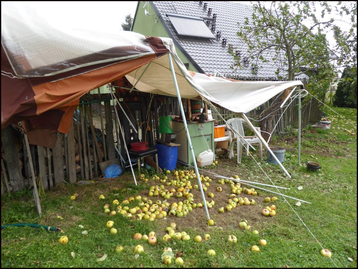 Kamarádi přeji příjemné dopoledne, to počasí neví co by dělalo, vítr mi potrhal můj partystan ve ktereém lisuju jablka a místo co by se chystalo mrznout máme tady skoro 20°C