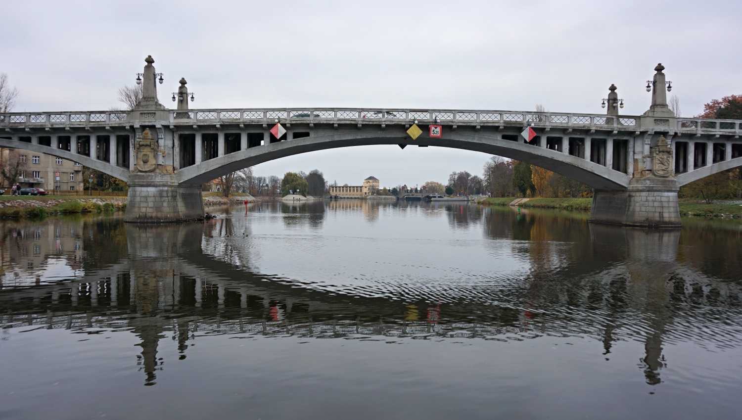 Posílám Nymburk, most přes Labe, a převozní loď která nahrazuje strženou lávku pro pěší.
