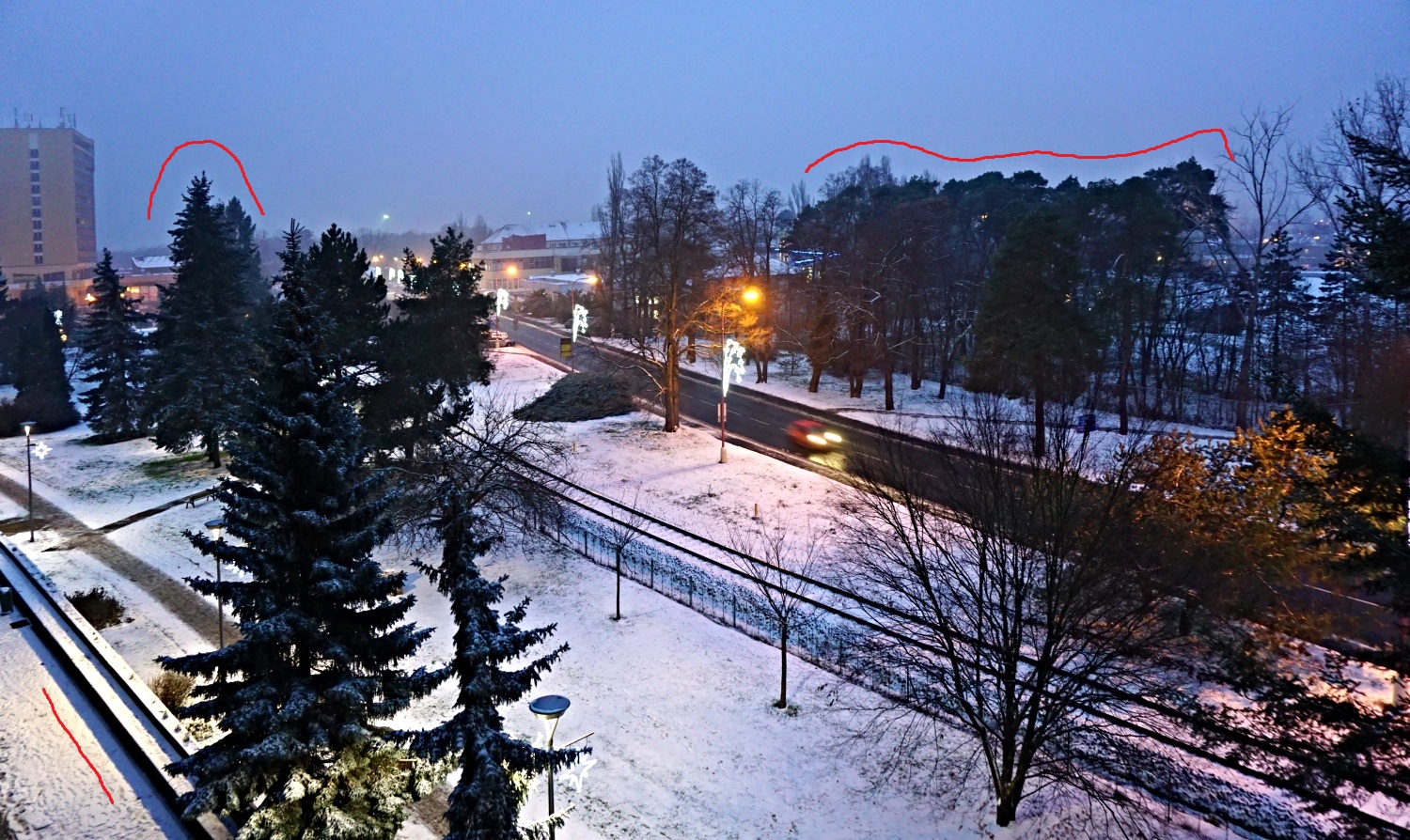 Je to okolo velblodového hrbu a okolo lampy vlevo.