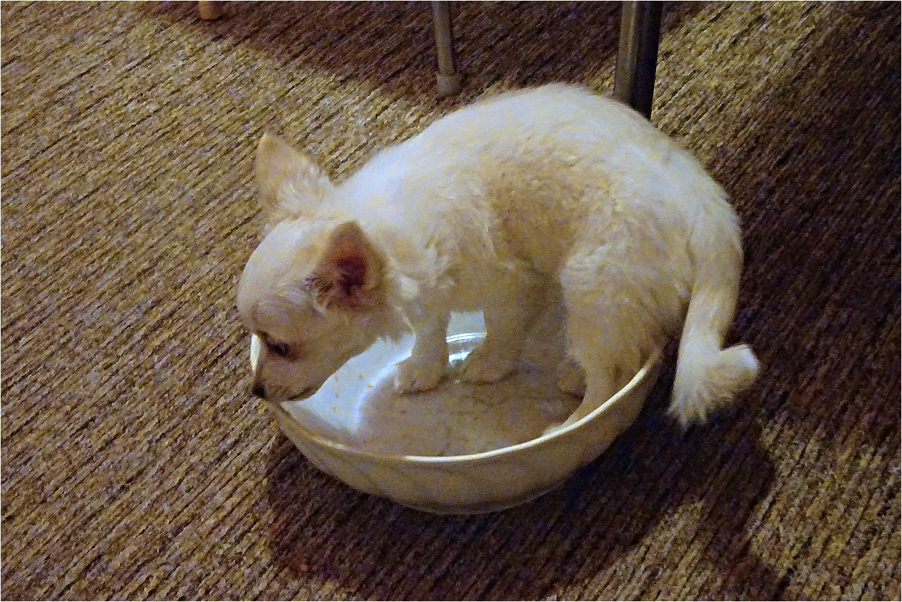 Zdenku, světla málo, blesk o strop...snad srst není modrá... ;)