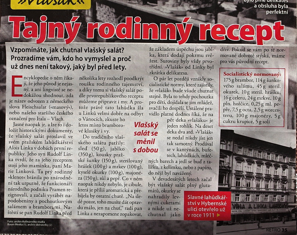 Před časem jsem si udělal vlašský salát podle ČSN z minulého režimu. Bylo to výborné. A před několika dny manželka koupila