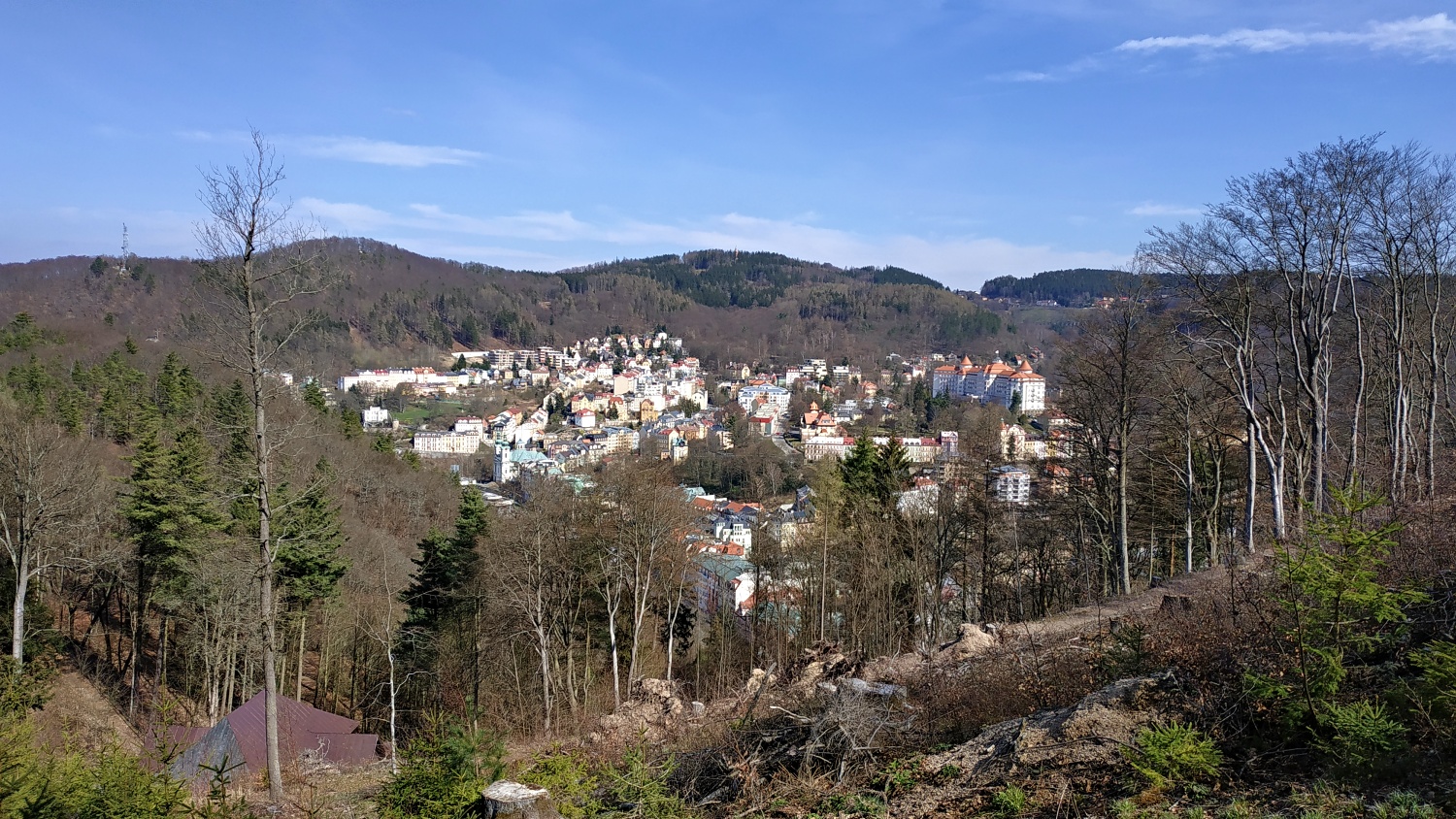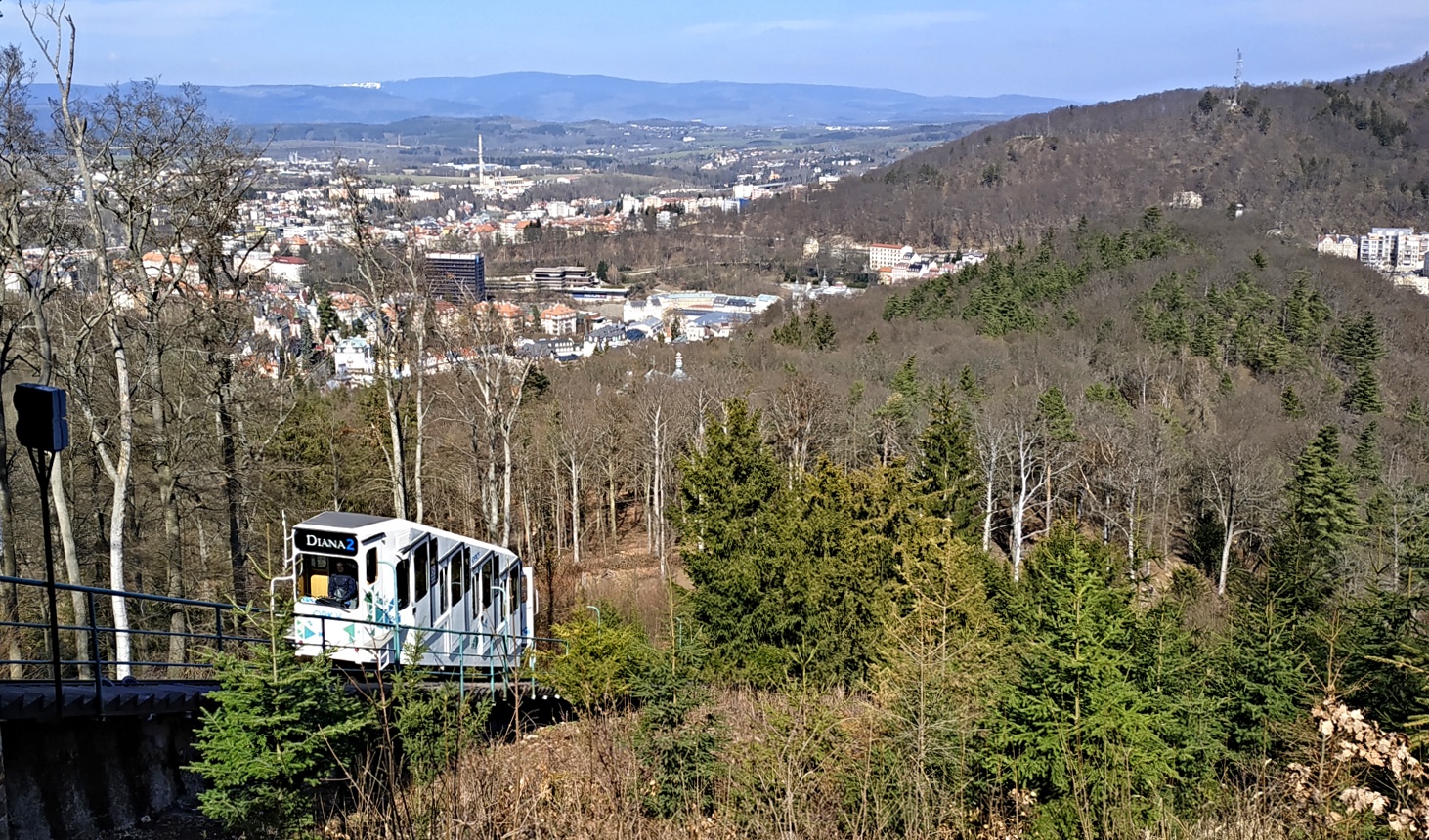 My jsme si vyšlápli pěknej kopec nad K.V. na rozhlednu Diana, dolů potom lanovkou. :)