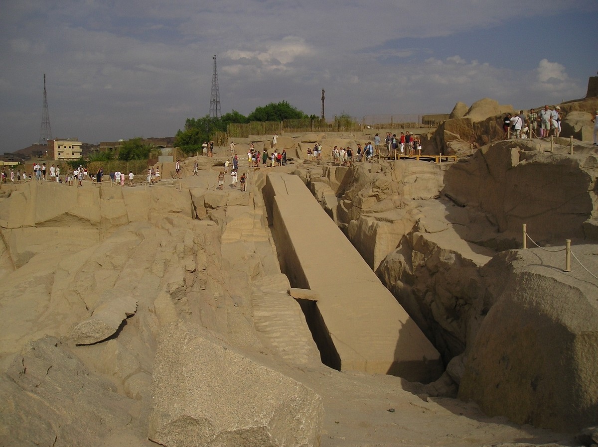 Obelisk, ještě nehotový praskl, hezká ukázka práce egyptských kameníků.
