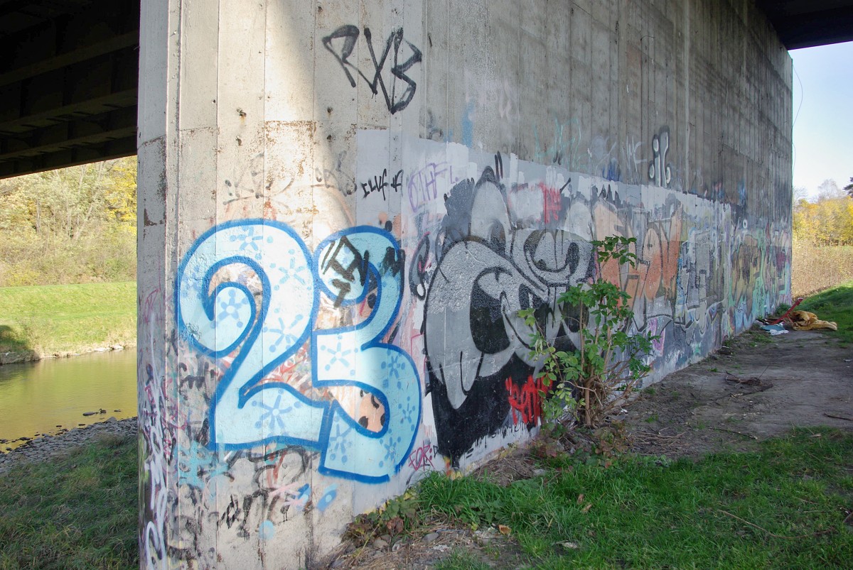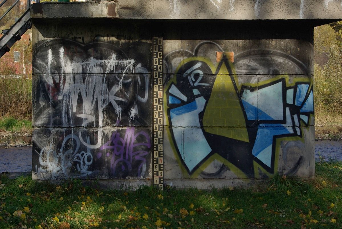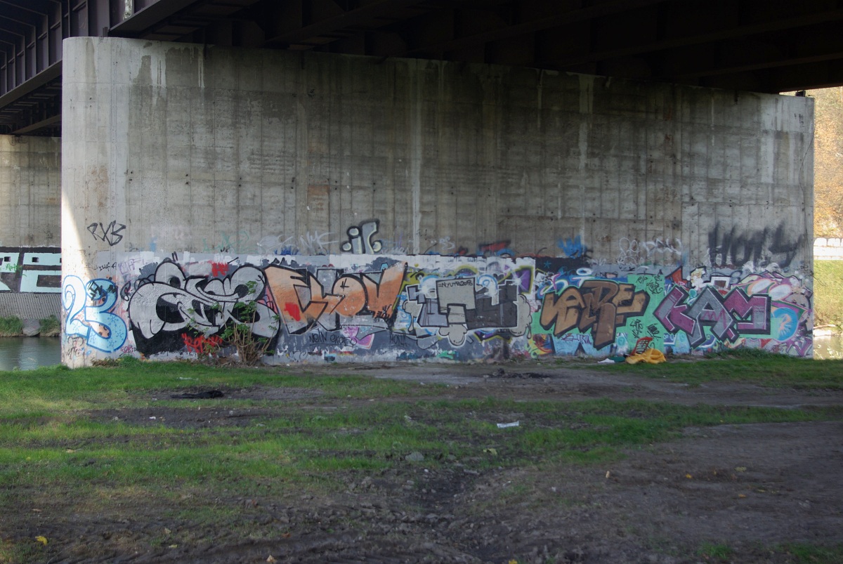 Odvezl jsem přibližovadlo znovu do servisu, aby si měli s čím hrát cestou zpátky jsem šel Moravou, kolem hraniční řeky. Koukal jsem na díla sprejerů. některá mizerná jiná lepší, některá zajímavá umístěním. Nad vodou. Zajímalo by mně jak to tam dělali