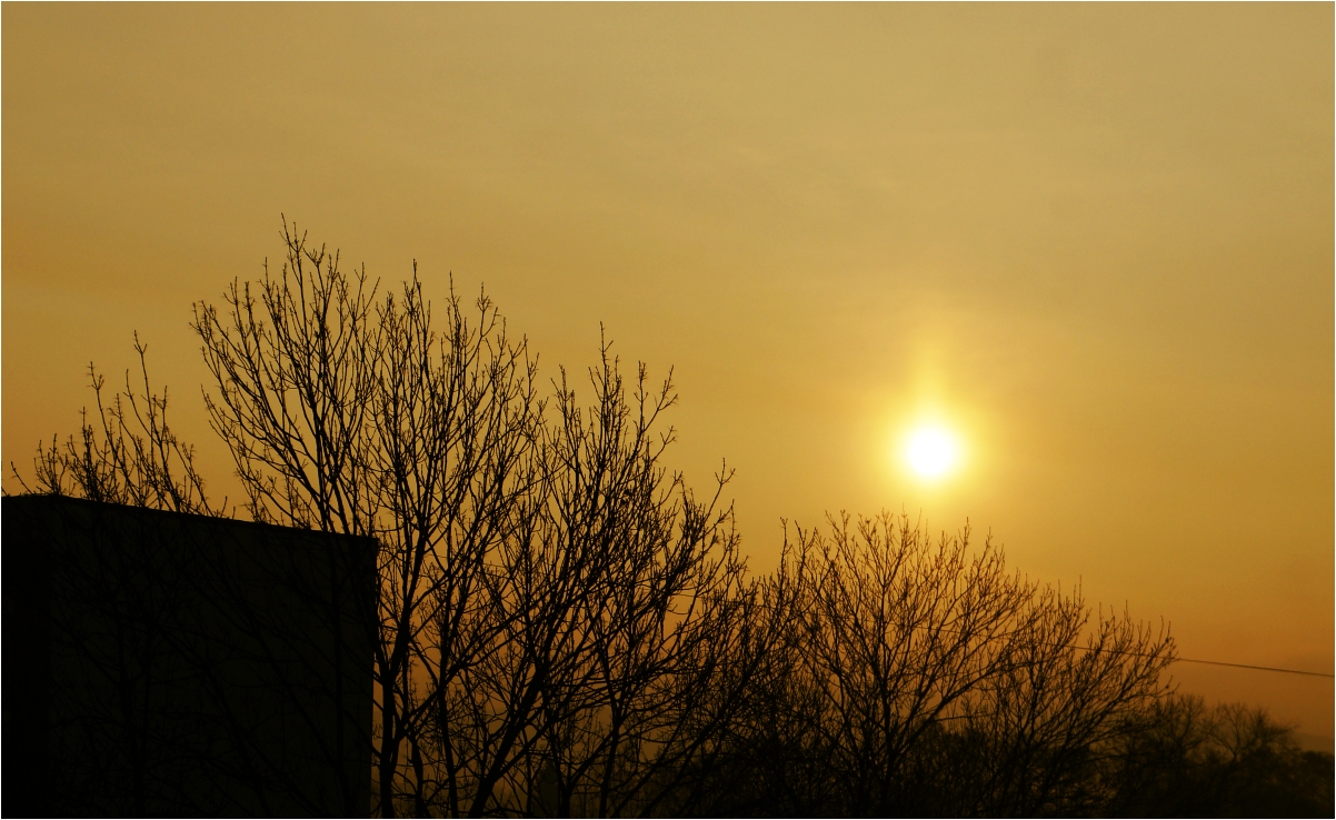 přes ten opar už vidím trochu modře, ale i bílé mráčky. A na jižní straně už trochu vidím hory. Na severu a východě ještě ne.
