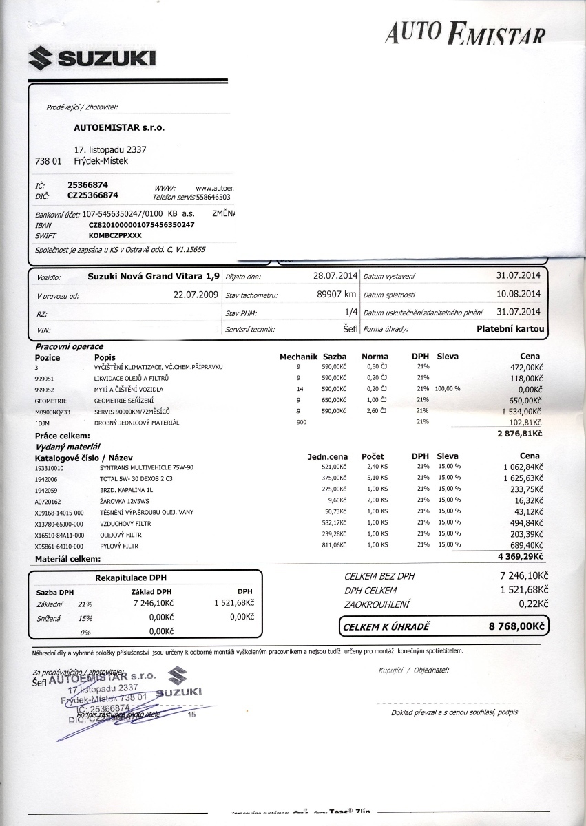 Jsem našel účet za roční prohlídku C3 po roce provozu... (y)