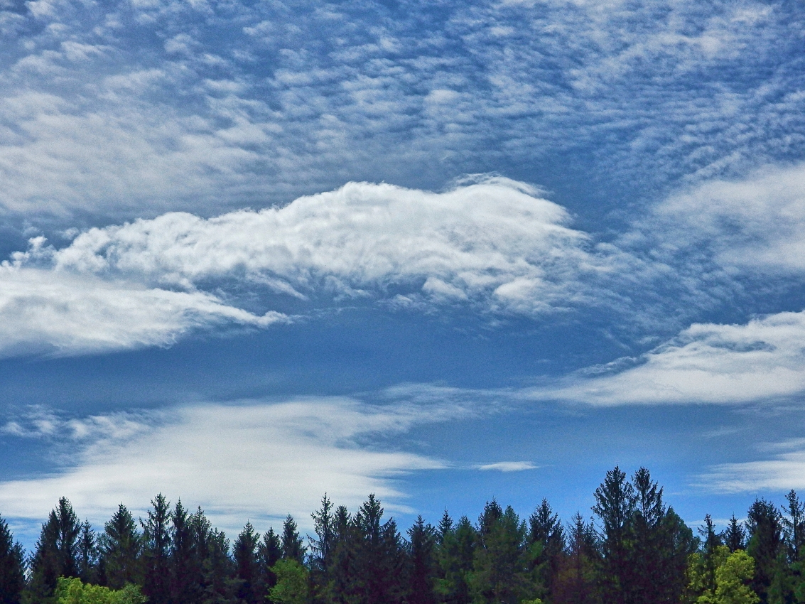 Protože tady obloha není jako u Jindry, dám aspoň jednu z pátku. Pěkné obrazy vytváří vítr a mraky ...