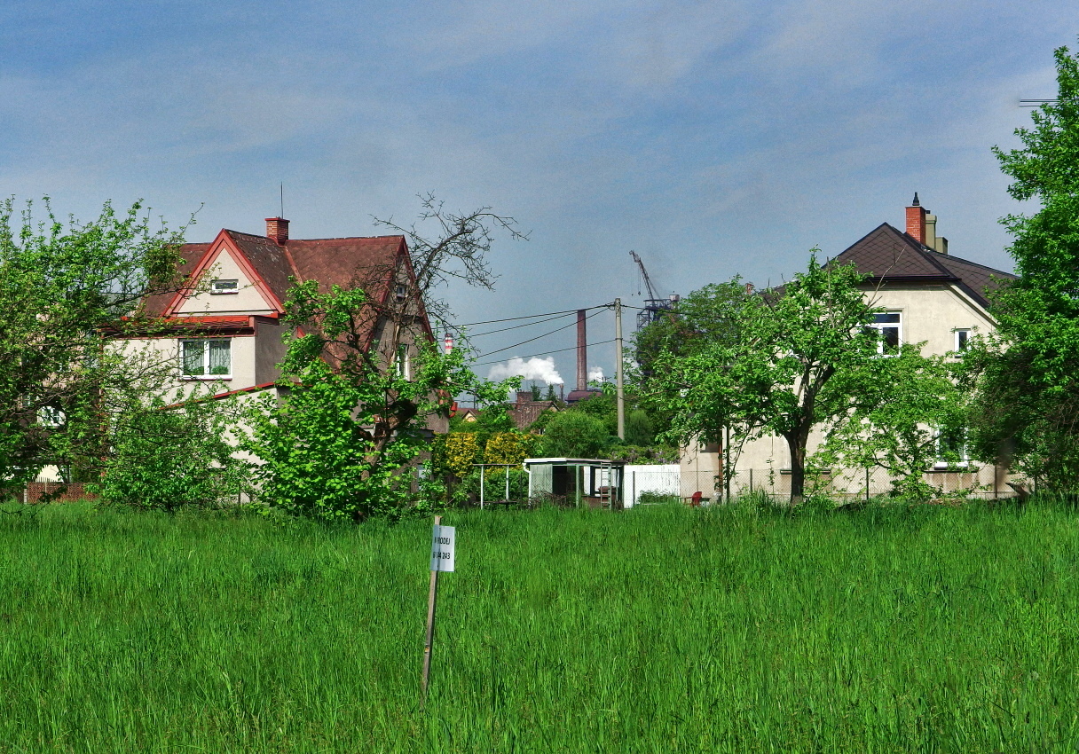 A k večeru mám jen takový cvaček, průhled mezi domy na železárny.