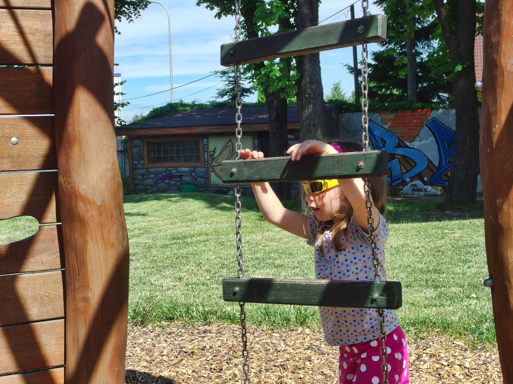 Jo a vnučce je tři a tři čtvrtě roků. Něco z dnešních prolézaček ukážu ...