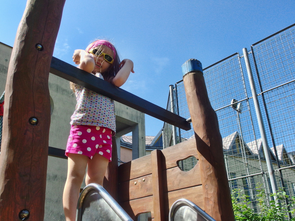 Vnučka teď snídá a pak jdeme na prolézačky nebo do písku. Do odpoledne mám o zábavu postaráno :D .