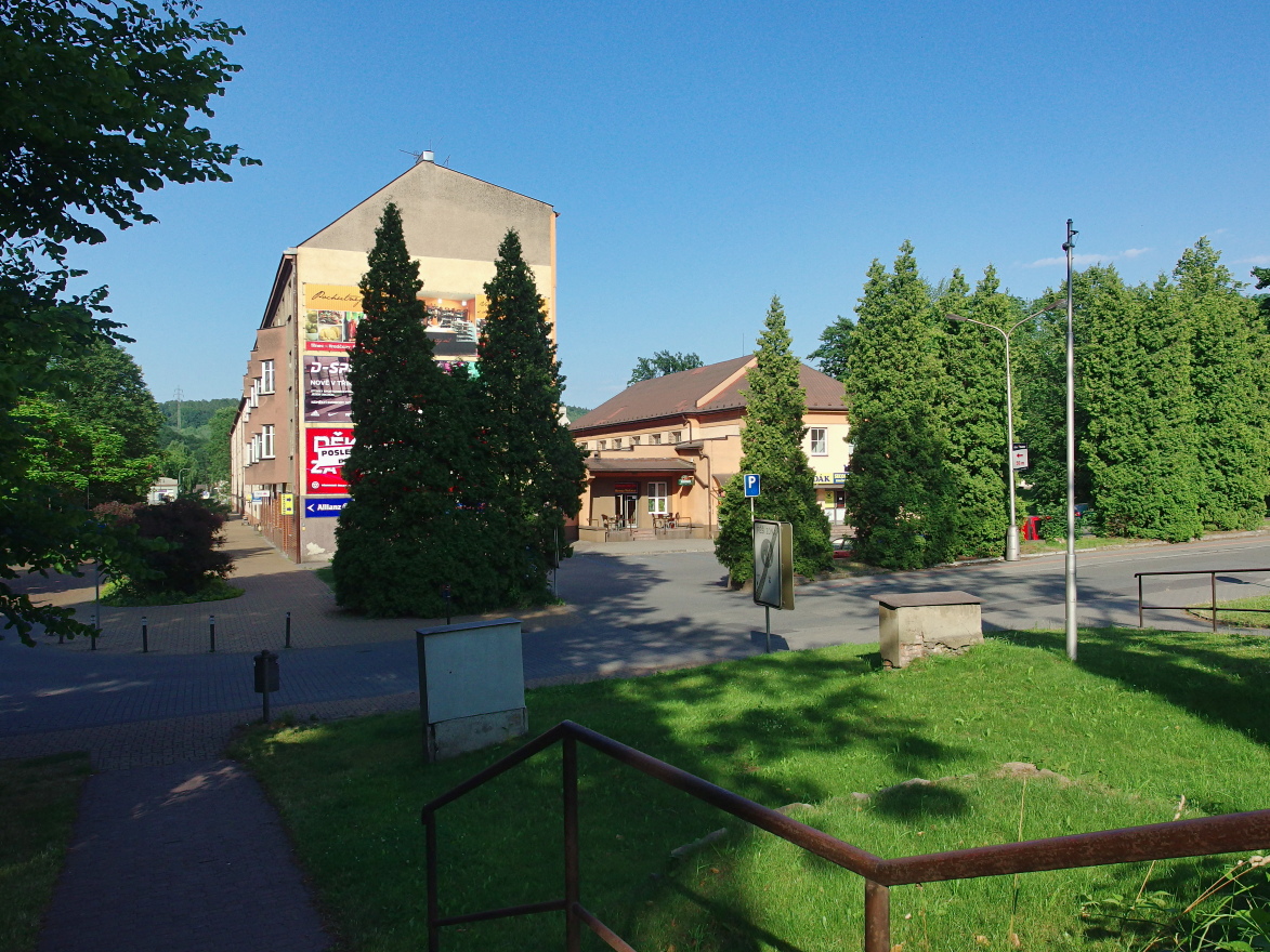 K té mé fotce - něco takového je na venčení pejsků ideální. Je to taková kavárna a cukrárna v budově bývalého kina, ze dvou stran