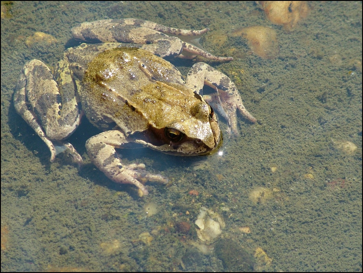 Byli jsme se podívat na kanál. Potkali jsme tam skokana hnědého. Na slivu už je polovina suchá (y)