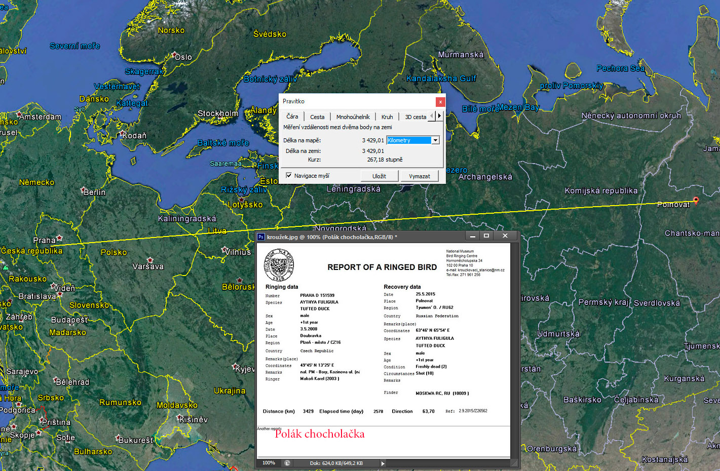 Tady vidíš, že to má smysl a i kroužkovací stanice v Rusku včetně myslivců fungují- pochybuji, že by náš myslivec se obtěžoval s kachnou která má kroužek odečíst a ohlásit na některou organizaci .....