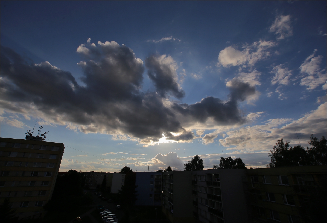 Vhodně to tam umístit a je to. Původní obloha byla jednolitá, šedá nuda, přikládám ji tu.