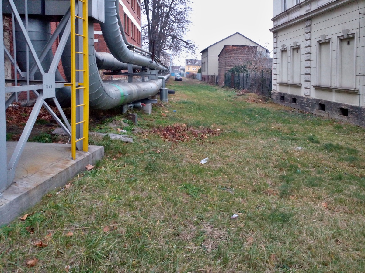 Jsem dnešní dopoledne strávil pobíháním po Ostravě. Když jsem ve Vítkovicích přišel k zajímavé proluce, tož jsem ji vyfotil. Ta proluka je jediná památka na vlečku od vítkovických vysokých pecí k ocelárně. V mládi jsem tam cestou pravidelně potkal veroniky, jak vezou železo. Když byla tma, býval to hezký pohled jak železo žhnulo do červena i přes stěny veroniky. To už nevyfotím. V Mittalu se sice ještě tekuté železo převáží, ale to už je všechno v areálu podniku. Tady ve Vítkovicích se to vezlo prostě jen tak mezi domy.