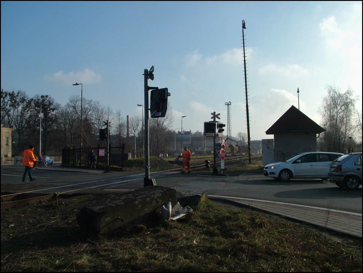 Okolnosti mě přinutily navštívit dnes dopoledne finanční úřad a protože ta kritická křižovatka je jen tři minuty od místa, kde jsem parkoval, dovolil jsem si přes nevraživé pohledy pracovníků, kteří přejezd opravují učinit pár obrázků