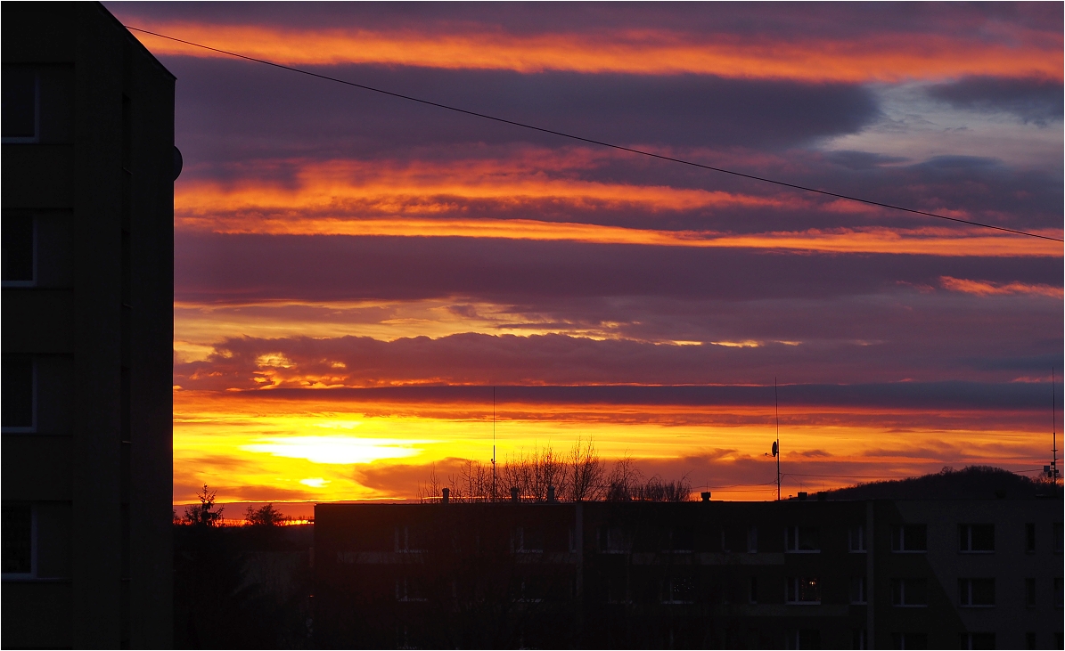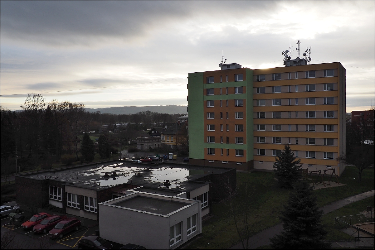 Tak přihodím trochu stromů a cvak z balkonu těsně před tím, než se slunce schovalo...