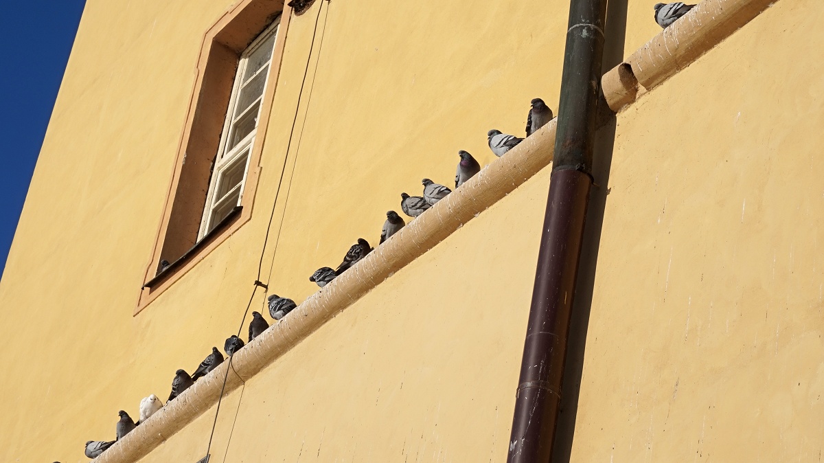 holub skoro na střeše