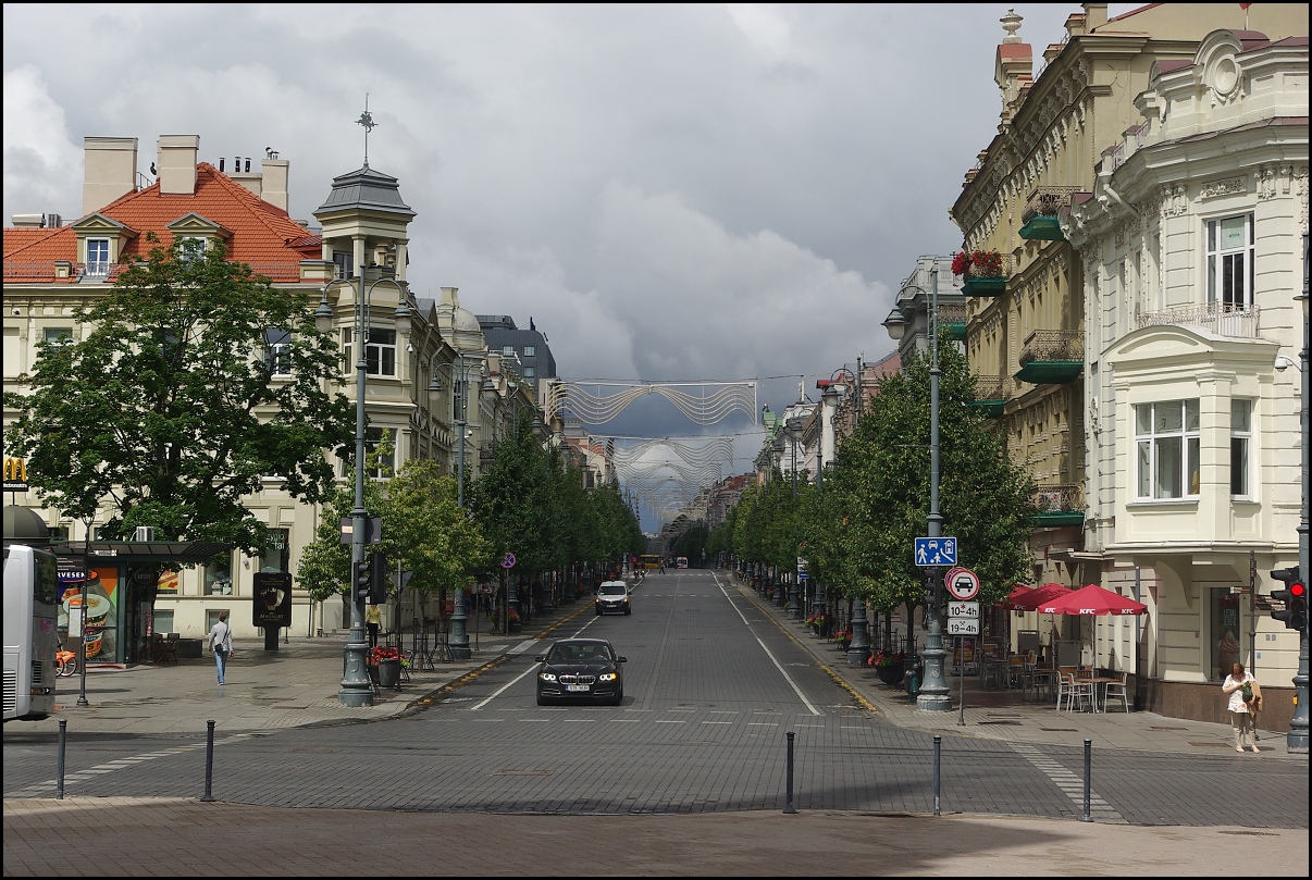 Venku je něco mezi deštěm a padající mlhou, tak obrázek z dovolené "Vilnius".