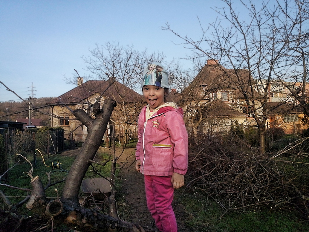 Na první fotce je starší vnučka, to bylo v sobotu a právě jsme s prací končili a na druhé je už po