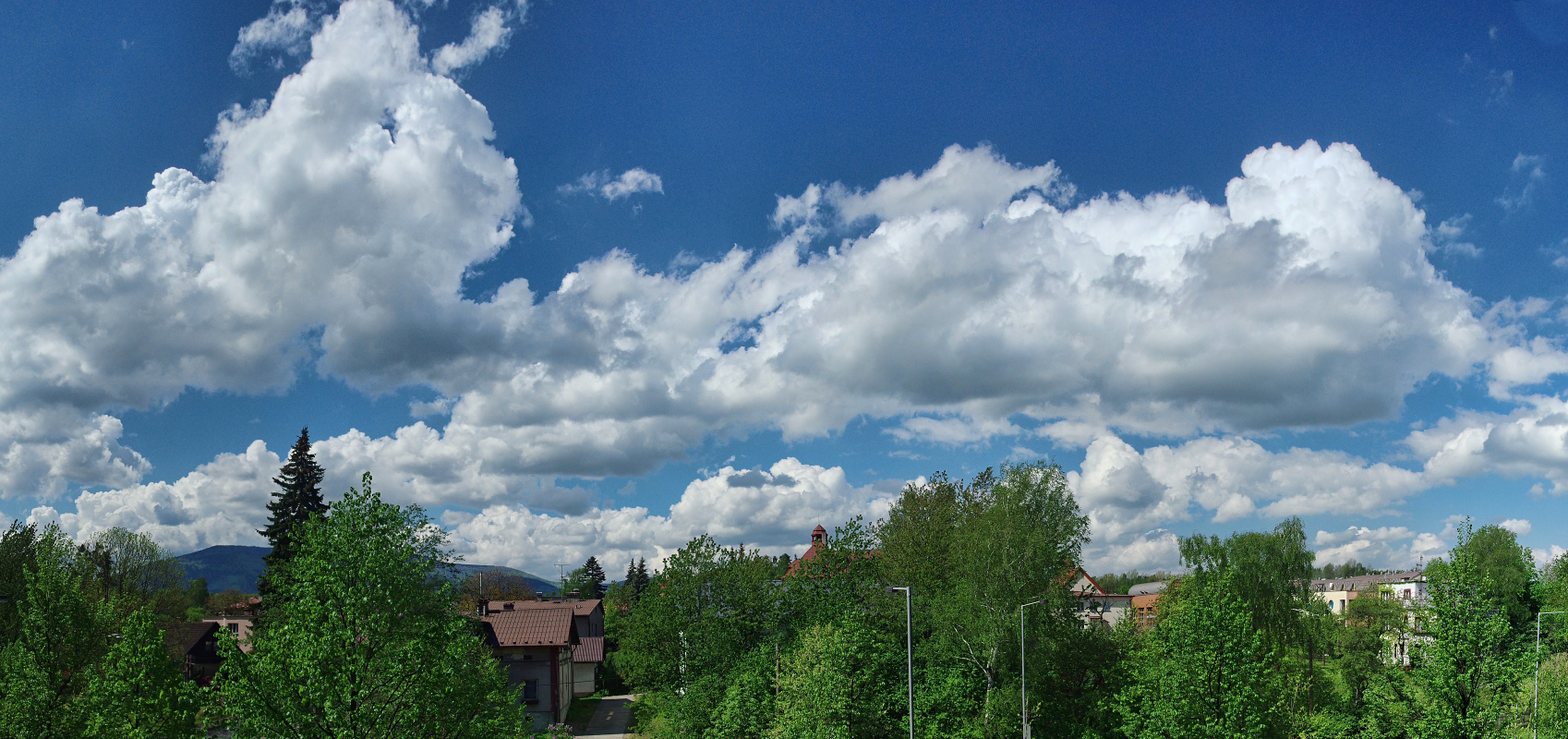 A kromě petrolejky tu dám nějaké mraky z dopoledne a pak jiný souvislý mrak s duhou z odpoledne. A také tu trochu sprchlo a zahřmělo.