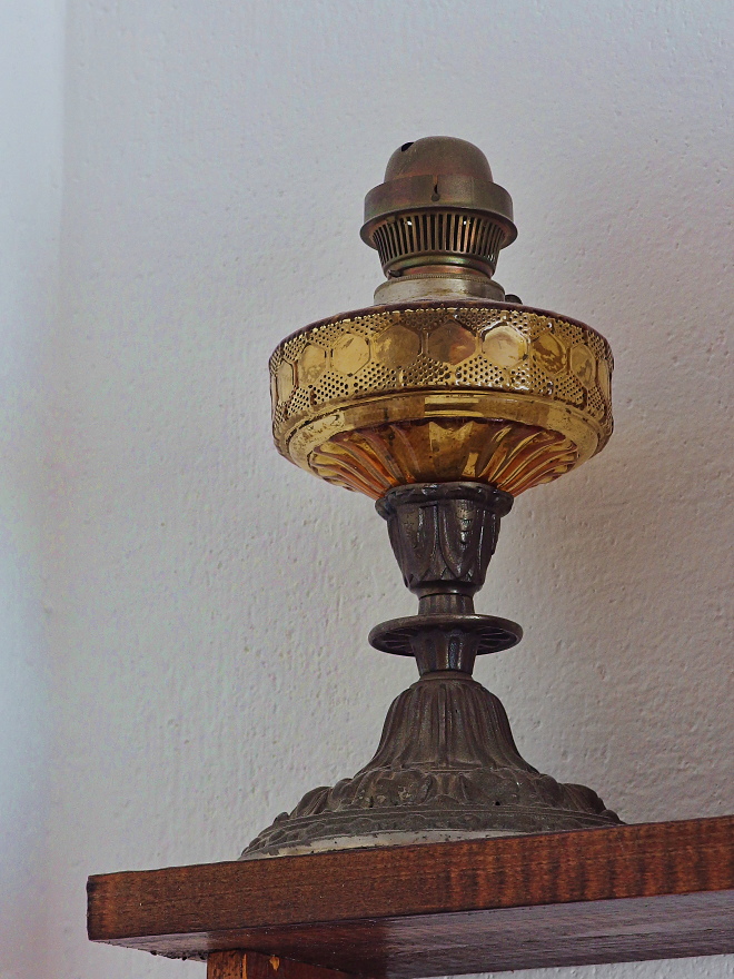 Jo, petrolejku mám také, pro každý případ. Jenže ji nejde použít, protože skleněný cylindr se kdysi podařilo synovi