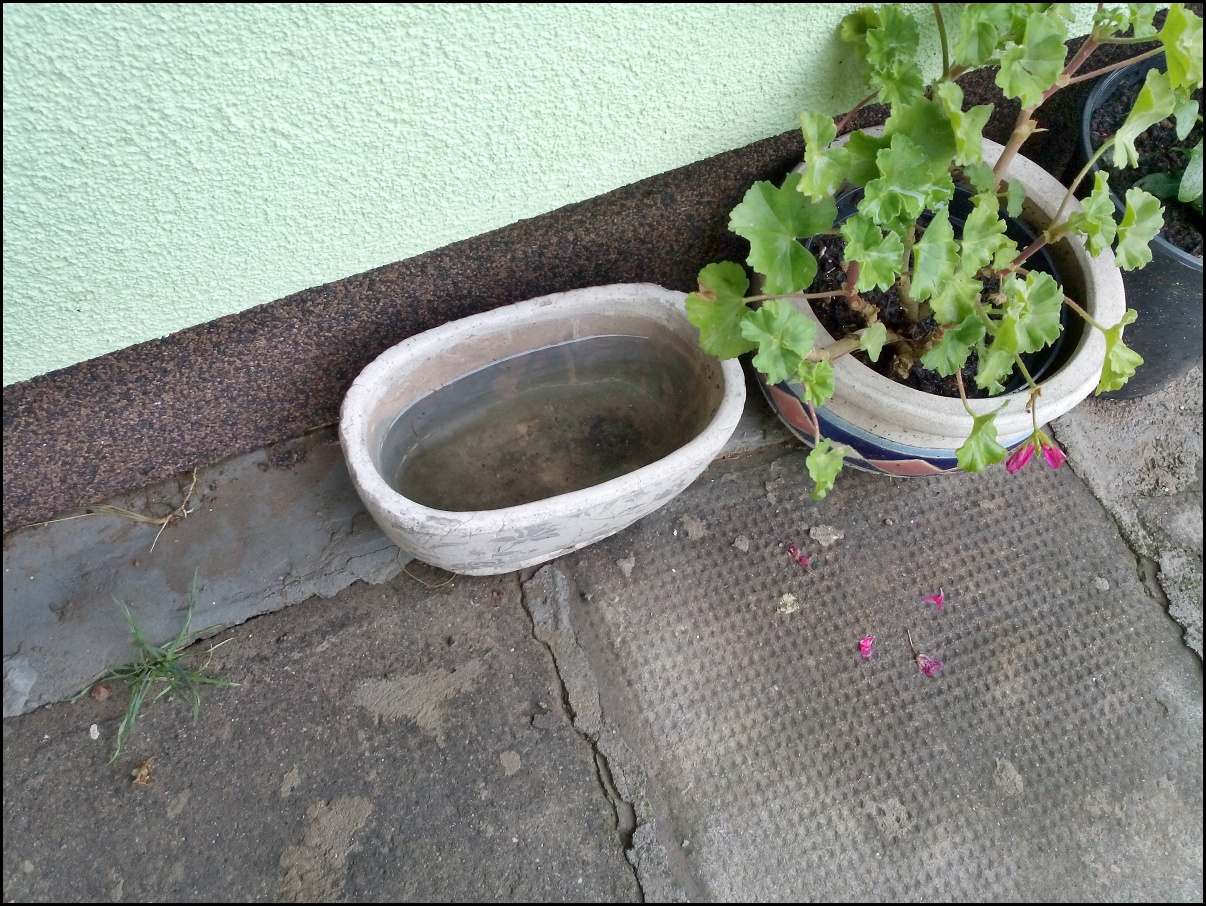 V noci tady byla divoká bouřka, slepice splavily z té hrůzy šest vajec. Květináče všechny plné vody. Má to výhodu, nemusím na hřbitov zalévat :)