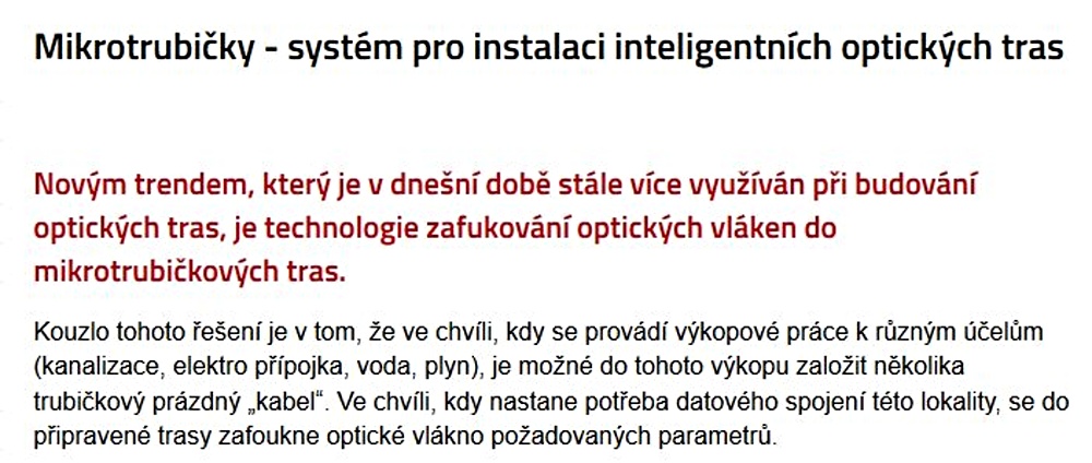 josef38 píše:Také se připojím s troškou do mlýna. V každém tom kabelu už skleněná vlákna jsou a je jich tam několik. Do položených trubiček už by nic nenacpali.