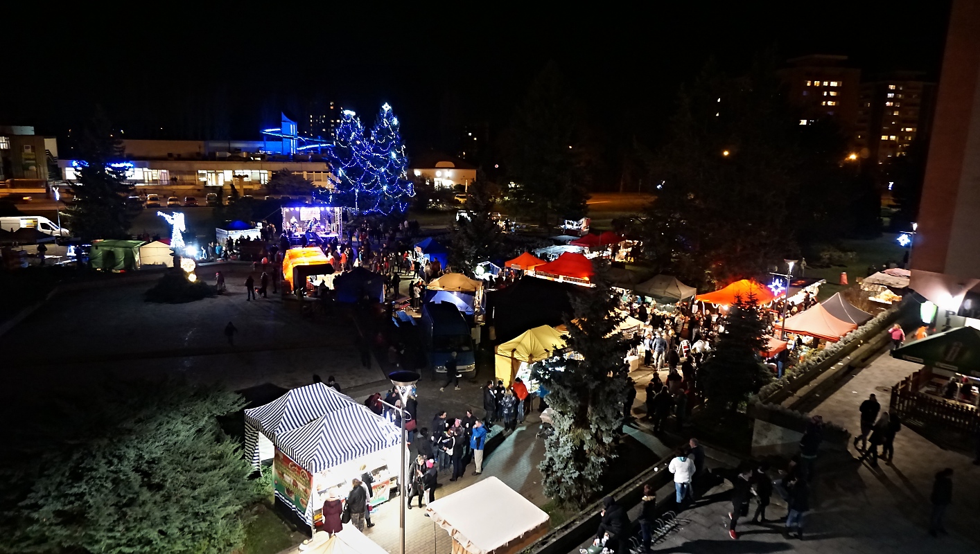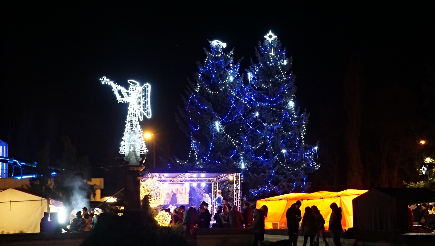 Stromek na náměstí už nám také svítí. Bylo veselo. Ale jen do 18ti. :)
