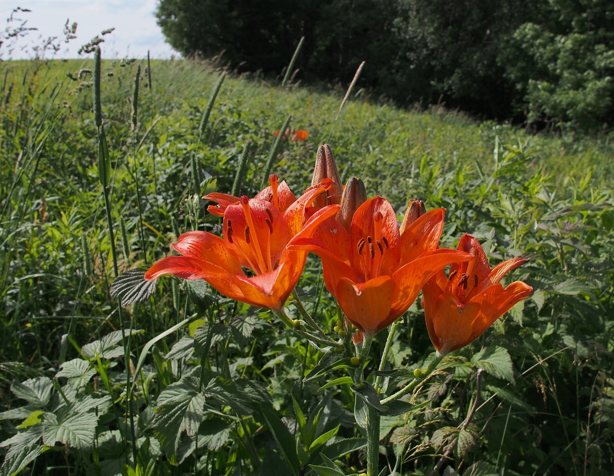 Jinak abych založení tohoto vlákna trochu oslavil, vložím snímek dnes čerstvě pořízený, šel jsem cvaknout na kopec divoce roztoucí právě kvetoucí lilie. Při tom jsem k mému potěšení zjistil, že se jejich kolonie utěšeně rozrůstá, bylo jich tam v tom malinčí mnohem více, než loni. Ale je také možné, že jsem tam letos byl prostě jen včas, ještě před "nájezdem" cibulek lilií chtivých lidí :mrgreen: