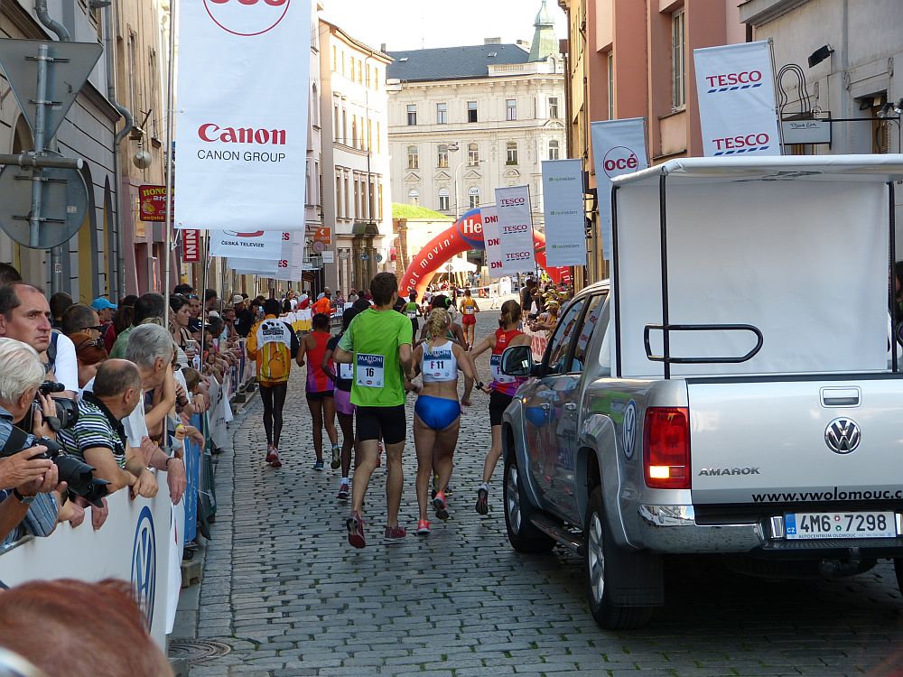 Kolego, v Olomouci jsou sice přísní policajti, ale stativy u foťáků snad ještě nevadí. Přihazuji pár fotek z olomouckého maratonu, kde jsem se nachomejtl jaksi náhodou, když jsem potřeboval přesunout své hmoty jinam. Trefil jsem se na začátek a zrovna při návratu na konec závodu :)