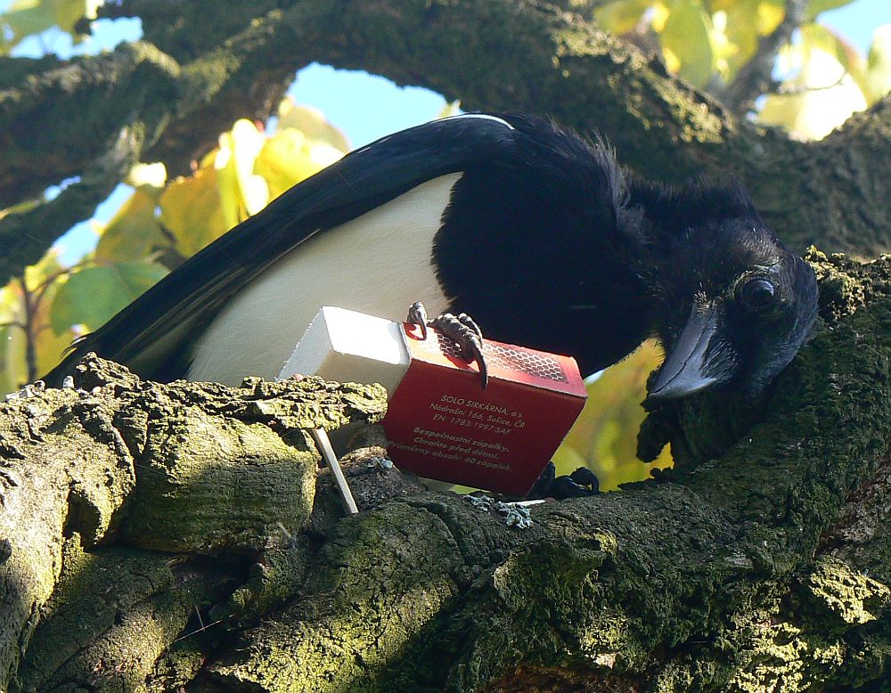 Straka, ale žádná Pražanda, nýbrž ze zapadlého venkova, poměrně daleko od obydlí a pěkně oražená :mrgreen: Od té doby raději klíče a mobil pořádně zatížím, aby mi to některá straka neodnesla někde do houští, kde bych se zřejmě ani nedostal. Čmajzla alespoň zápalky. Ale z takové straky aby měl jeden strach, aby někde něco nezapálila :mrgreen: Jak vidno zříti, ani na moravském venkově nejsou žádní burani, jak se mnozí Pražáci domnívají. Dokonce i straky tu máme velmi civilizované :D