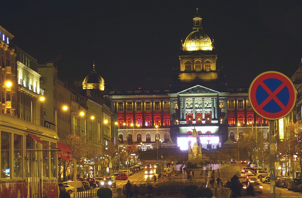 Na vlak mi zbývala opět dobrá hodinka a bylo škoda ji nevyužít . Začal jsem u Čechova mostu, kde na "ulici stáli...1 strážník", další zatím na chodníku pěkně sledovali jak mu to jde. Pohvizdoval si , hůlkou vířil - no nádhera, i ti Dánové v hotelu museli být jak u vytržení. Chtěl jsem, aby vzhledem k své důležitosti byl větší, ale to by mi nejspíše vjelo nějaké auto na záda, protože bych musel blíž k němu- nejlépe zalehnout do vozovky- aby to mělo lepší perspektívu
