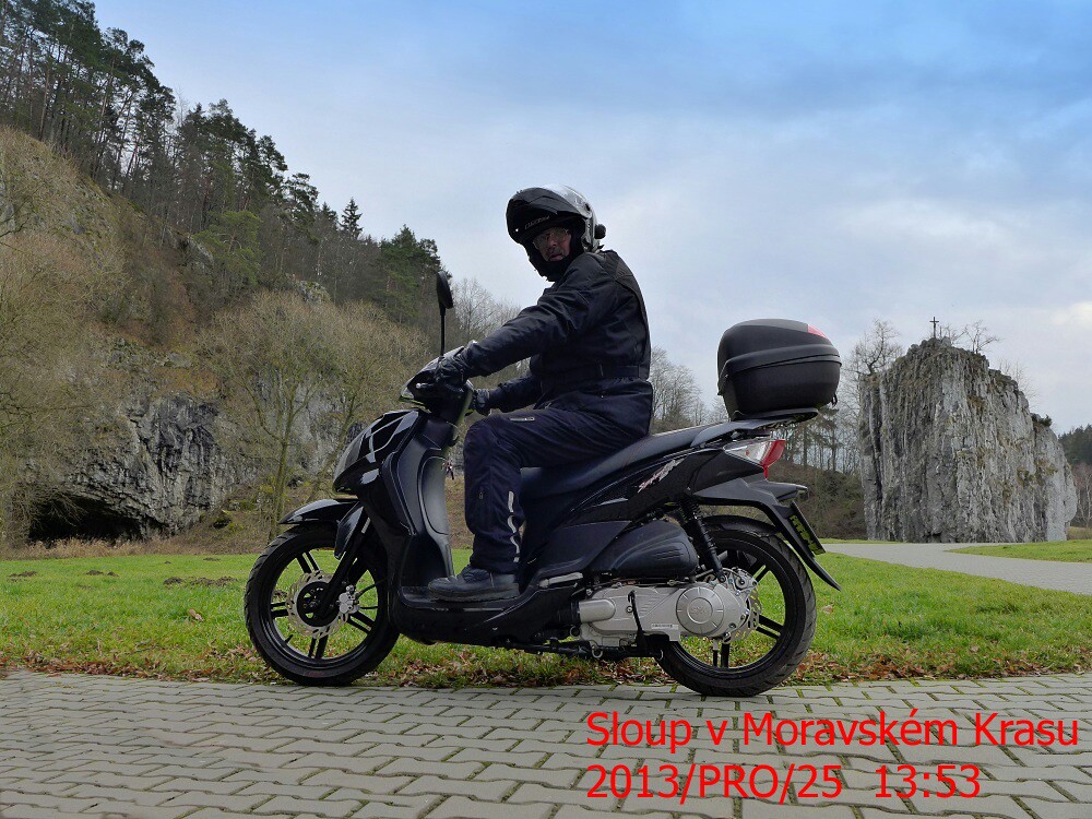 Chápu zaplněné náměstí motorkáři :-) Také jsem si pořídil skutr 125ccm,a vyrážím na výlety .Na první svátek vánoční,jsem se rozdodl "vyhnat pavouky z výfuku " bylo teplo,tak jsem navštívil Sloup v Mor.Krasu,kde jsem se "bliknul" samospouští !