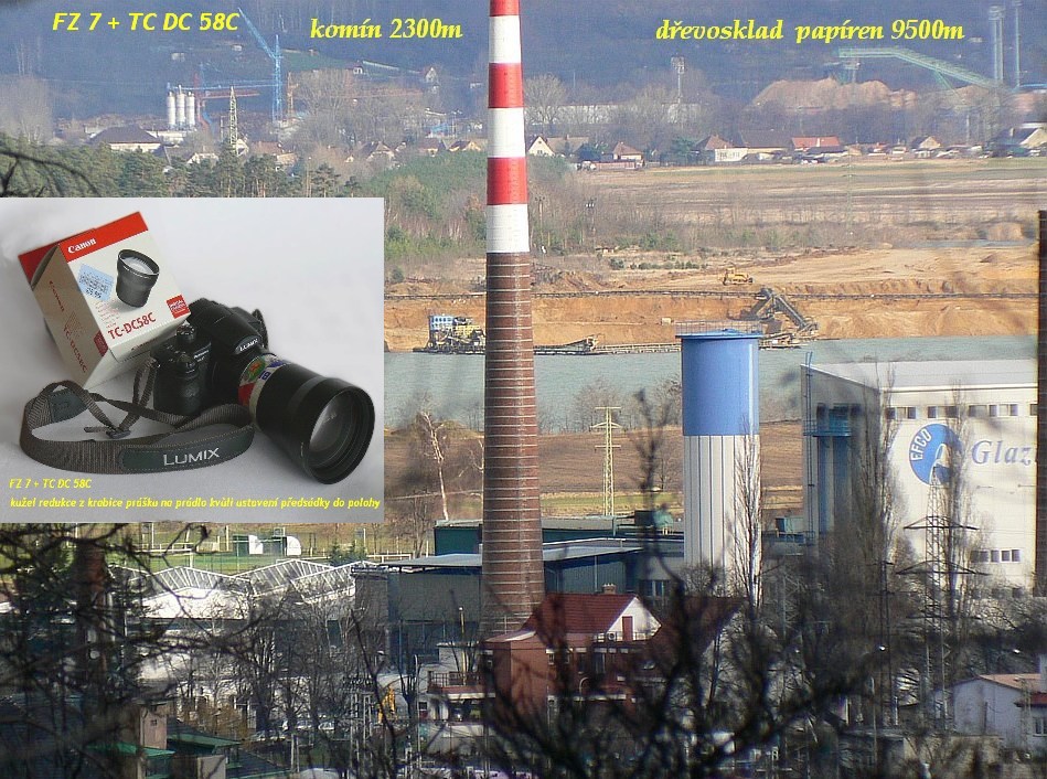 Jarku, máš snad T-CON 17 nebo néé?? S redukcí 52/55 se to dá na 150 nasadit i když to neostří úplně ideálně, Ten posun o šířku kroužku dělá trochu neplechu, kdysi jsem s tím dost laboroval na FZ 30, bylo to tehdy ve spolupráci s kolegou. Zkoušel jsem Panáckou LT-55 i Canoňáckou předsádku TC-DC 58C, která měla mít zvětšení 2x, ale poměřováním mi o tak moc nevycházelo, pár pokusů a pak jsem byl rád, že jsem ji prodal - a byl jsem lehčí velice rychle o 400 :? . Zkoušel jsem i natáhnout Zuiko 4015", poněkud neobvyklé řešení pro zrcadlovku, ale fungovalo to :o Až na to budu mít trochu čas, tak pohledám něco z těch dob :cry: - komíny jsou FZ-7 a TC-DC 58C, ale svítilo sluníčko...a to prý fotí každýmu volovi :lol: , ale ostré to je- asi na 8,5 km- jeřáb a to vzadu! ...bylo to ještě dál-viz následující příspěvek