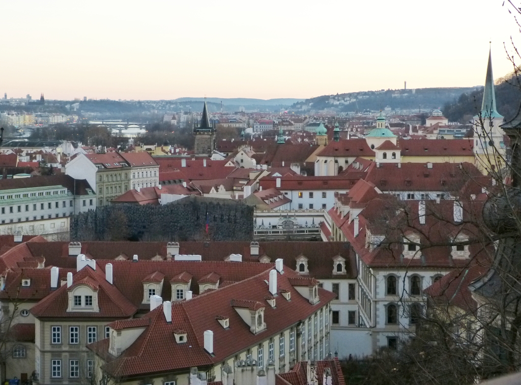 Jinak vše při starém a při staré. Takže fota spíš jen z okna. Petřínská rozhledna a žižkovský vysílač po pátku 13. osvětleny v barvách francouzské trikolóry. Ale tuším, že v ruském letadle zahynuli také lidé. Nebo ne? Tož nevím ... :cry: