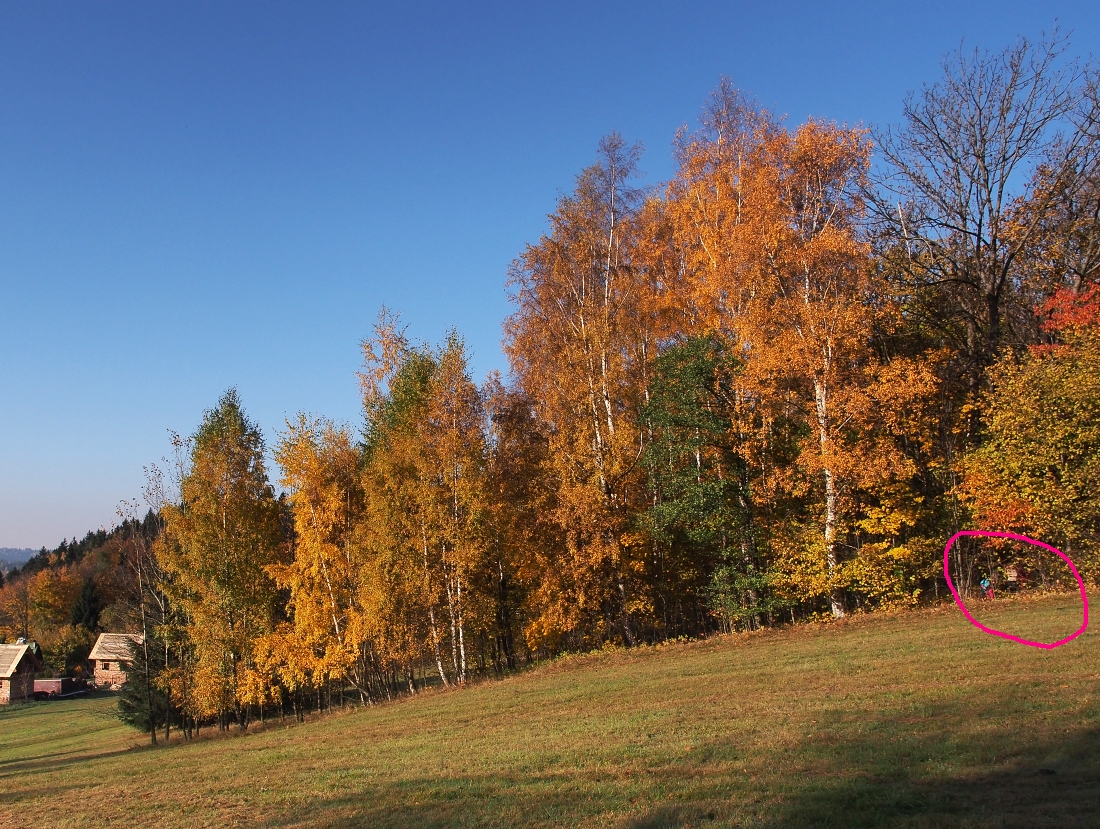 Tak si myslím, Jaryne, že nás jako dúchodce nic pěknýho nečeká. A to teď nemám na mysli tu finanční stránku věci spojenou s důchodovou reformou. Jde mi o postavení důchodců, jako takových, kteří jsou masmedii, díky neustále propírané důchodové reformě, čím dál tím intenzivněji stavěni do role těćh celou společnost obtěžujících a zbytečných lidí. Bohužel tyto takto uměle vyvolané společenské nálady a postoje dnešní mladí rodičové, ale prostředí ve školkách a školách, přenášejí i na děti. .... Proč to píšu, onehdá jsem coural ráno po okolí a fotil si ty barevné podzimní projevy a z jedné takové probarvené březinky (viz příloha) vylezly 3 děti (cca 5-12 let), byly tak na 15m a když mne zahlédly, nejstarší dívenka říká, "hele nějakej staroch". Tedy čekal bych normálně něco jako pozdrav, který je normální u dětí z naší vesnice, které potkávám, jako "dobrý den", či "dobré ráno", ale k tomu zjevně svými rodiči a zcela určitě ani školním zařízením, tyto děti vedeni nebyly, natož pak k nějaké té základní úctě ke starším lidem. Taková poklřivená generace lidí nám tu vyrůstá Jaryne, to se máme na co těšit. .... Byly to děti rekreantů, kteří tu mají v zahrádkářské kolonii vystavěny zděné chatičky (viz další snímek přes údolí). Doufám, že třeba strom bude mít víc času, který věnuje na výchovu svých potomků (n).