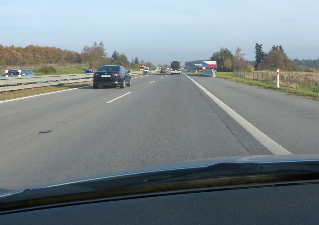Konečně z "pohraničí" na dálnici. Tam je to jako u blbých - samá česká vlajka :mrgreen: Co si o nás musí myslet cizinci? :?: :roll: :cry: Při 130 se ale blbě fotilo :roll: :mrgreen: V zácpě to pak bylo už lepší. Místo 313 kilometrů jsem najel 390 s průměrnou spotřebou 6,2 l/100km Natural 95. Po Praze průměrná spotřeba kolem 10 litrů na stovku :roll: :cry: Ale nelituji, byla to změna, byť před Kroměříží už za tmy docela mlha až do Otrokovic.