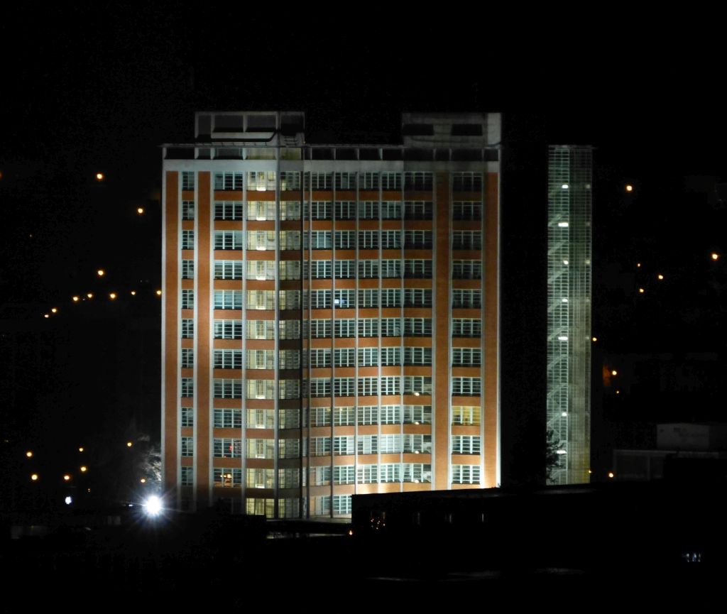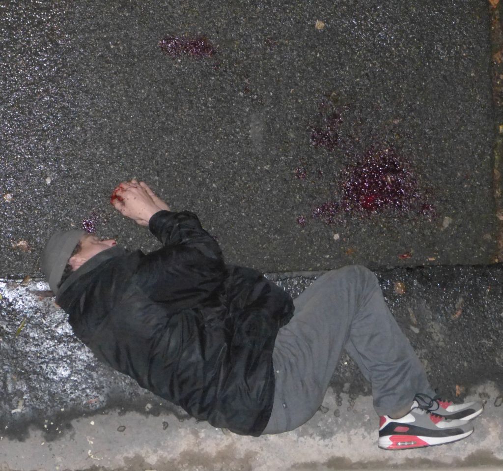 Noční probuzení o půl čtvrté ráno a nahlédnutí z okna mého ubytovacího prostoru nebylo zrovna moc příjemné. Nebylo napřed poznat, co na chodníku leží, vypadalo to na nějaký papír. Pomohlo až nastavení blesku na plné koule, abych zjistil, že tam někdo leží na zemi a je zakrvácený. Než jsem se stačil obléct, tak kolemjdoucí zavolali záchranku. I když to vypadalo hrozně, tak pán měl prý rozbitý nos a za pomocí záchranářů sám do sanitky nastoupil.