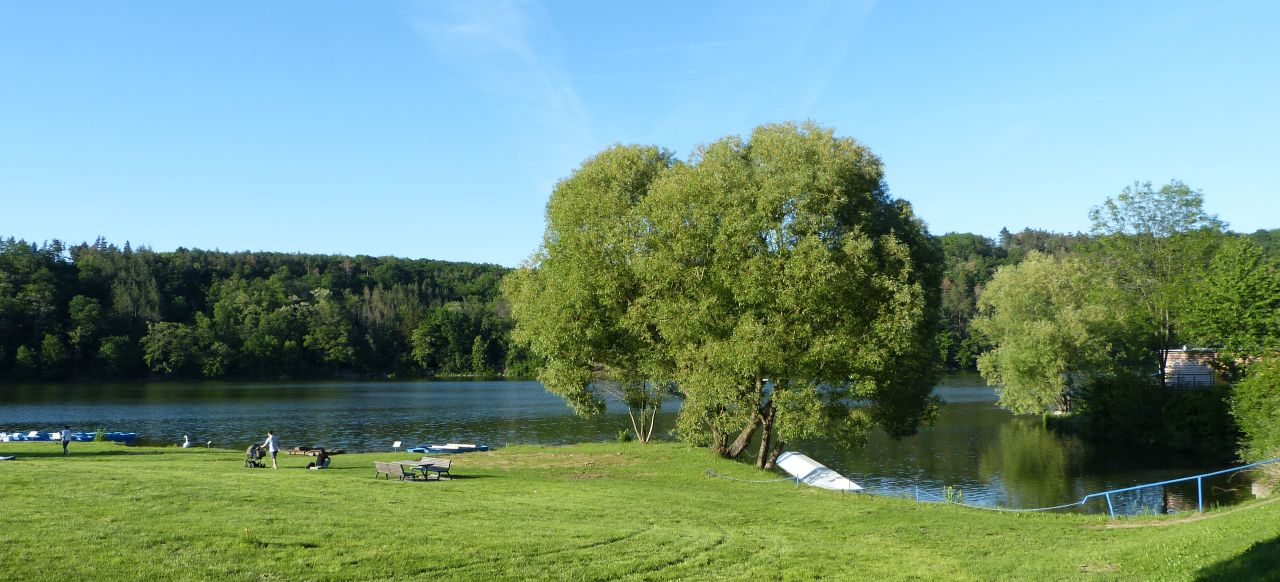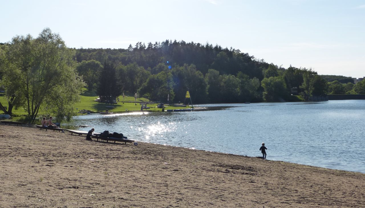 Abych nebudil veřejné pohoršení, tak jsem si udělal vycházku, že mi kalhoty oschnou. Postupně jsem se dostal až k Hostivařské přehradě. Byť kalhoty byly už dávno suché, tak mě ta přehrada velmi zaujala, až jsem se dostal přes koupaliště, které ještě nebylo v provozu, páč byla zima, takže jsem jím mohl nerušení projít. Cedule, že je vstup povolen pouze bez plavek jsem minul, protože žádný zákaz jsem neporušil, plavky jsem neměl, měl jsem na sobě ještě lehký kabátek. Na nuda pláži jsem minul tři starší chlapíky, kteří si neměli co pocvrnkat