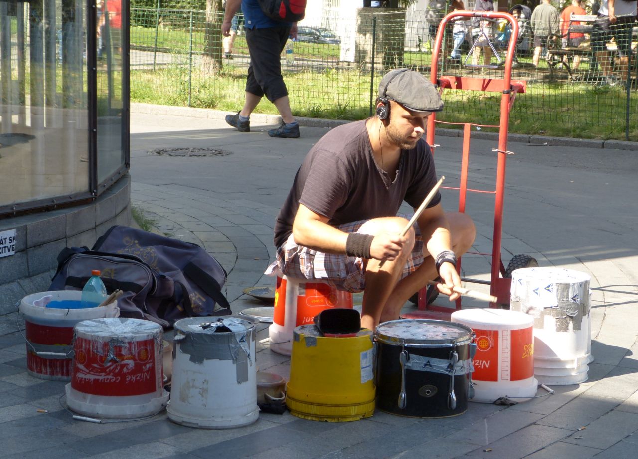 A hrát se dá na leccos. Třeba na kýble od barev. A pak už i já na vlak.