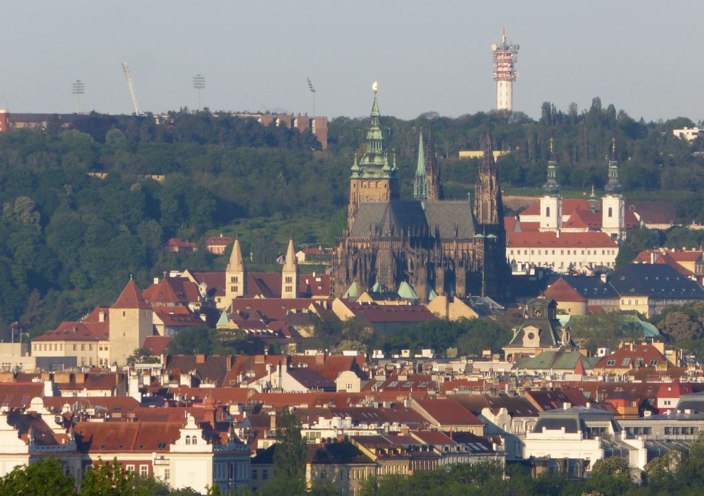 Vidět je Černinský palác - Ministerstvo zahraničních věcí, Loreta, Ministerstvo obrany, samozřejmě Hrad, Strahovský stadión,a jiné. Když je jasné počasí, tak se snažím postupně orientovat. Kam můj čůůům dohlédl, tak to tam mám prošlé pěšky i od mého brlohu. Praha je docela malá