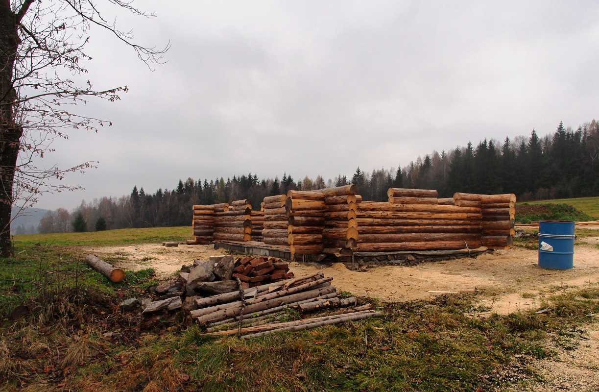 No nic, posílám jeden dokumentační z pokračující stavby dřevěného srubu, kolem kterého občas chodím:
