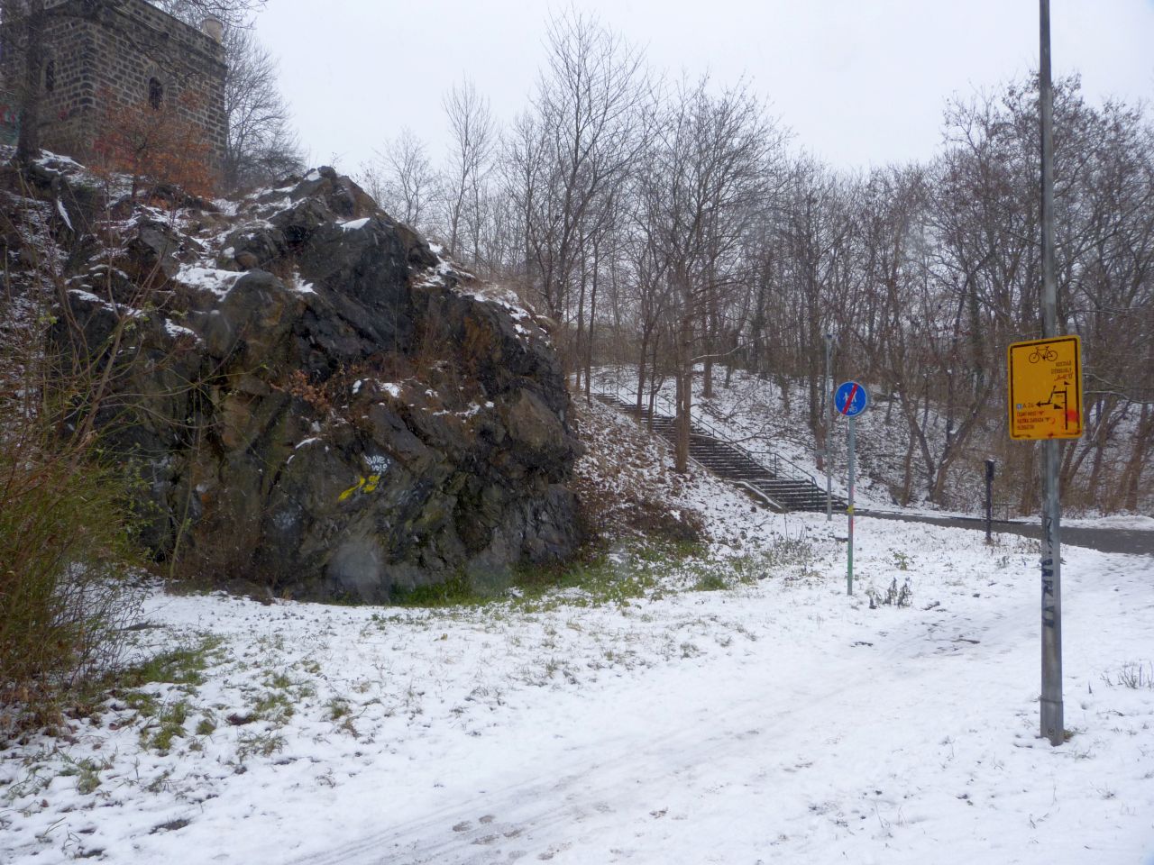 Trochu odbočil pro mě do neznáma, protože to tam už trochu znám. Takže Hořejší rybník a po schodech nahoru. Ale opět jsem narazil na trasu, kterou jsem již šel v létě kolem střelnice z Hrdlořez.