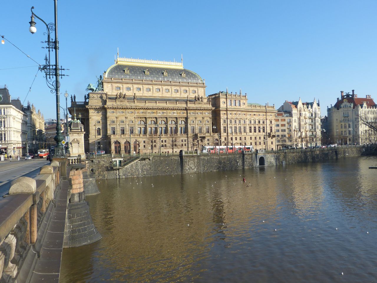 Po krásné neděli krásné pondělí, kdy jsem jaksi ale musel do centra do Jungmanovy ulice. Po vyřízení potřebných věcí jsem se vydal Národní k Vltavě na most Legií. Krásný výhled na Národní divadlo, Karlův most i Hrad či Novotného lávku.