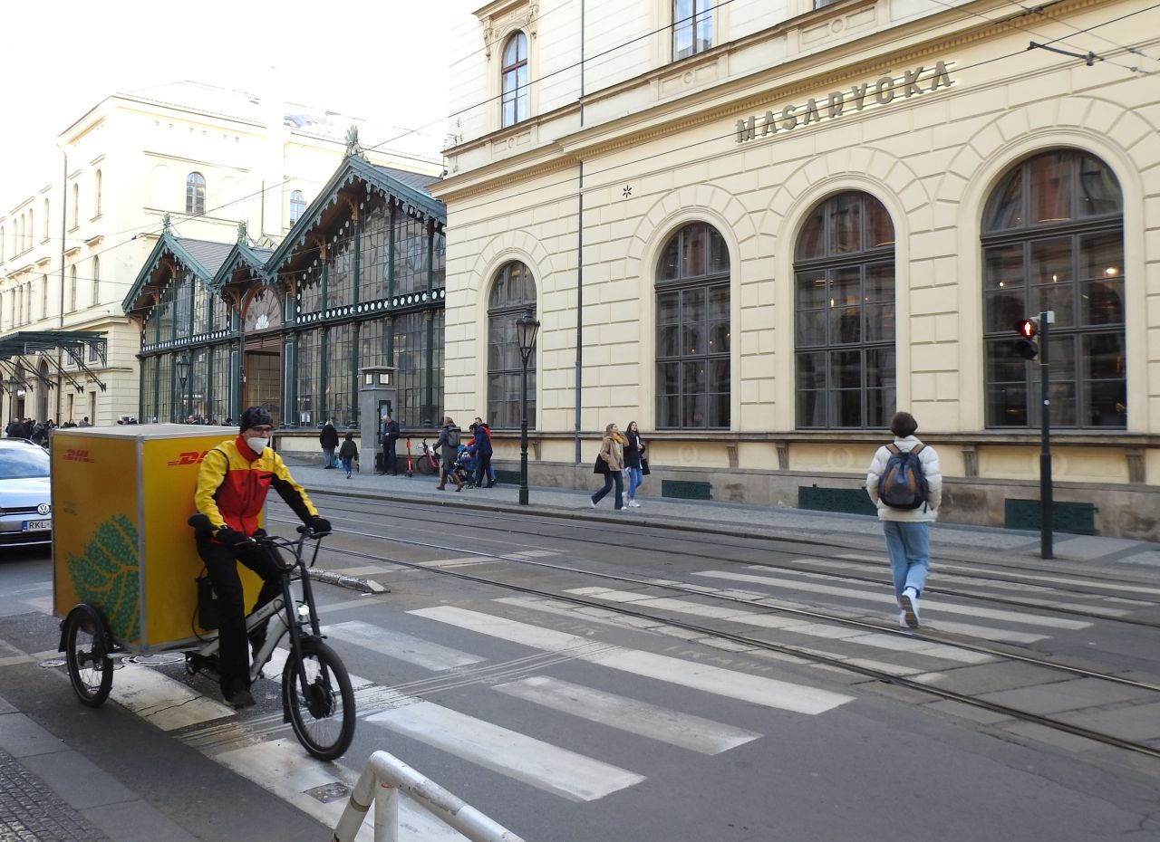 Karlův most už znám, tak jsem to vzal přes nádvoří Klementina. Docela dobrá zkratka. Vyšel jsem naproti Nové městské radnice a pak Staroměstské náměstí, Celetná a na tu tramvaj Masarykovo nádraží. Zaujala mě holčička s tabletem. :mrgreen: Možná zrovna zapisovala teplotu vzduchu. Kdo ví?